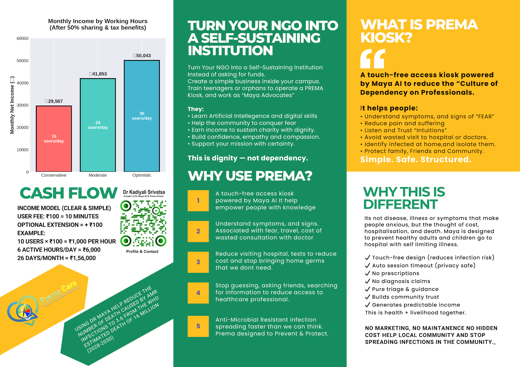 We offer a holistic range of services to help alleviate "FEAR," which often manifests as signs and symptoms of disease. More people die not with disease or infection but due to fear. Doctors and People in Power want to continue the “Fear-driven Healthcare” and will immediately try to drag me into regulation, licensing, and “practice of medicine” debates, even if Maya does not diagnose, prescribe, or treat. So I created PREMA: To help people stop asking friends, family, or searching for information on Google - and panic.